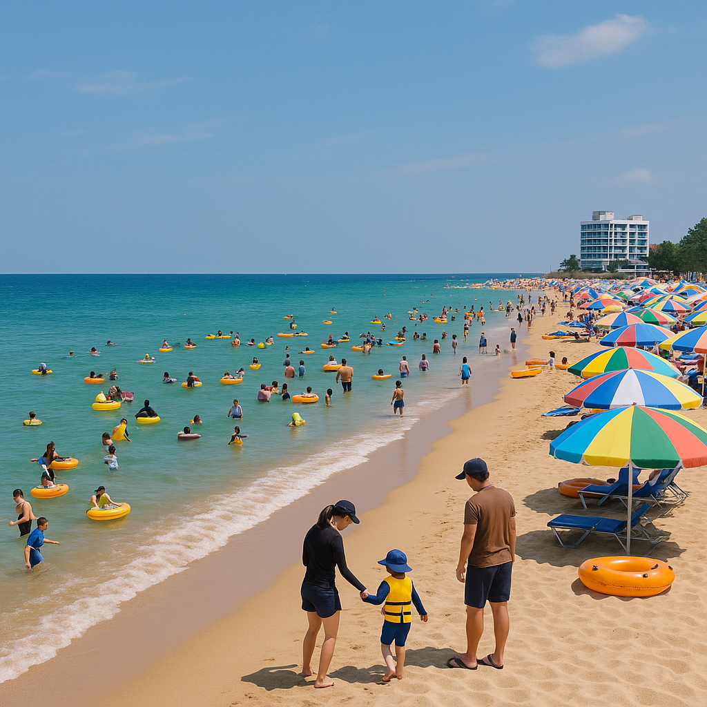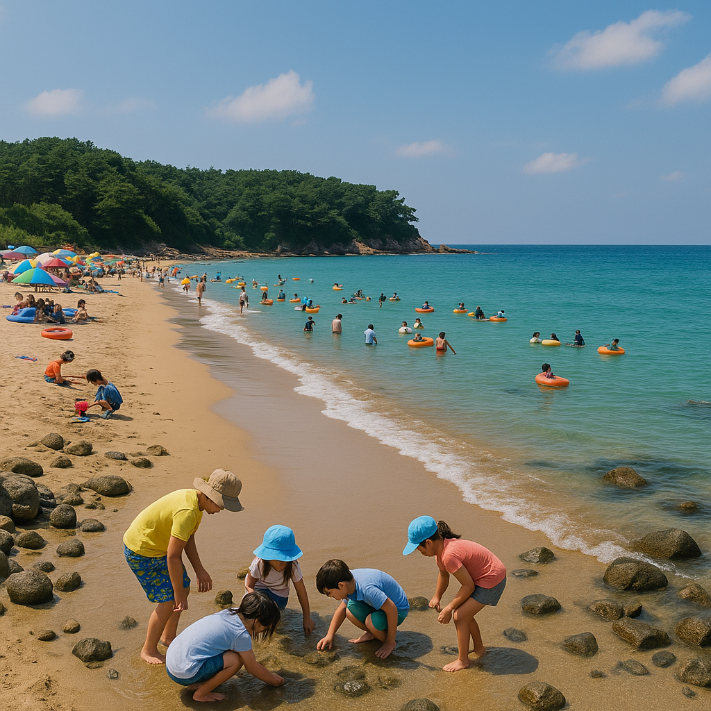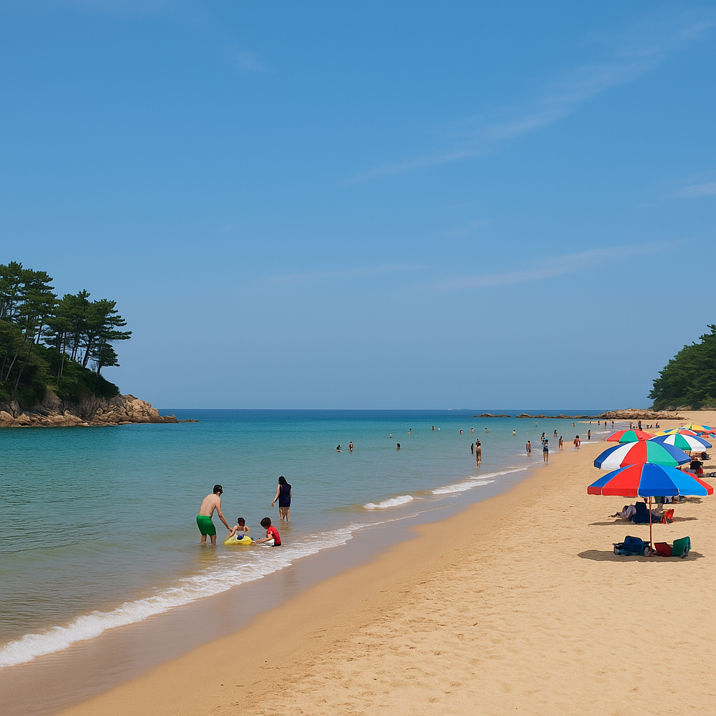 - 특징: 파도 완만, 깨끗한 백사장, 근처 숙소 다양