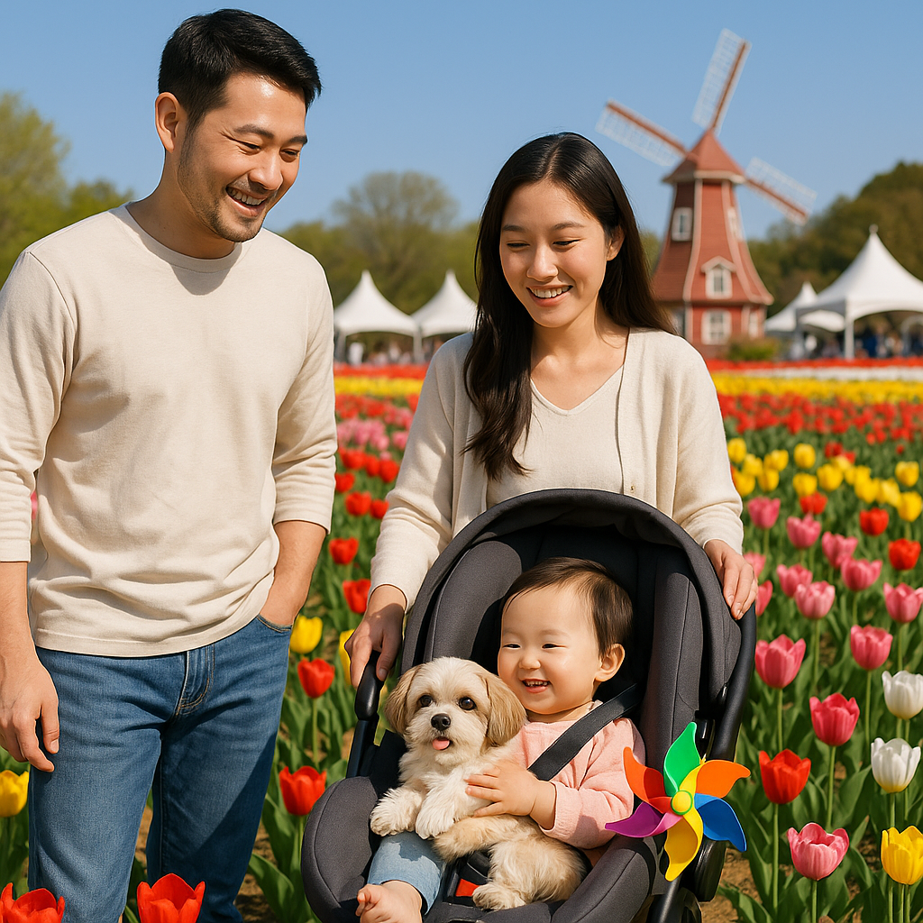형형색색 튤립이 펼쳐진 꽃밭 속에서 아이는 ‘우와~!’ 엄마는 ‘찰칵📸’