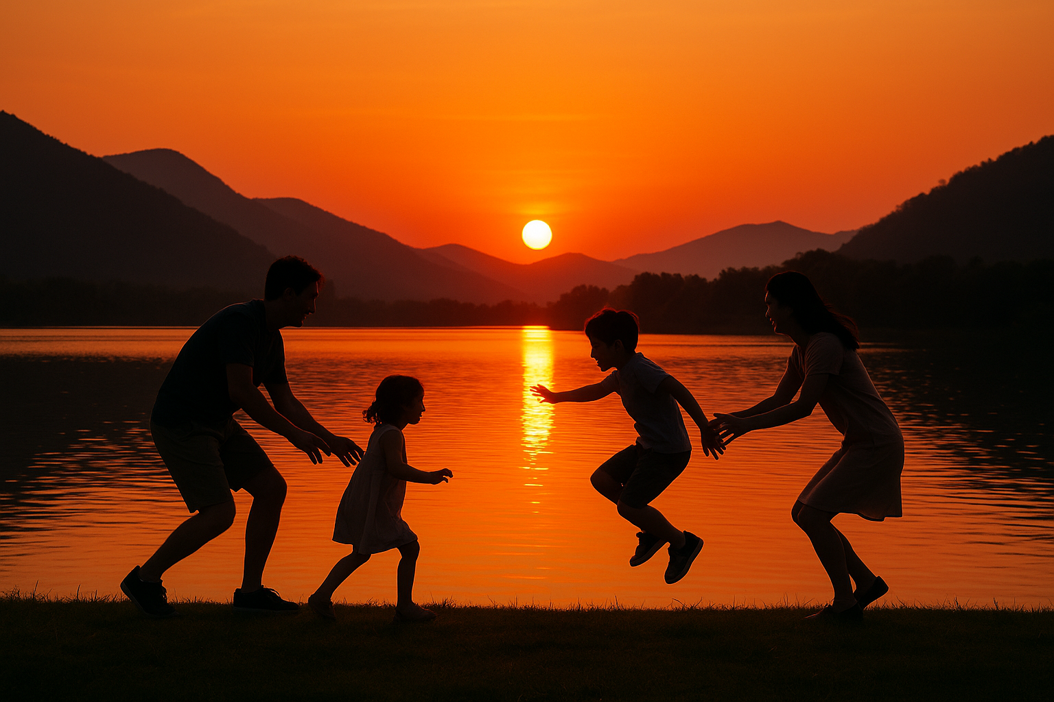 노을 지는 순간엔 그림 같은 가족 사진도 꼭 남겨보세요.