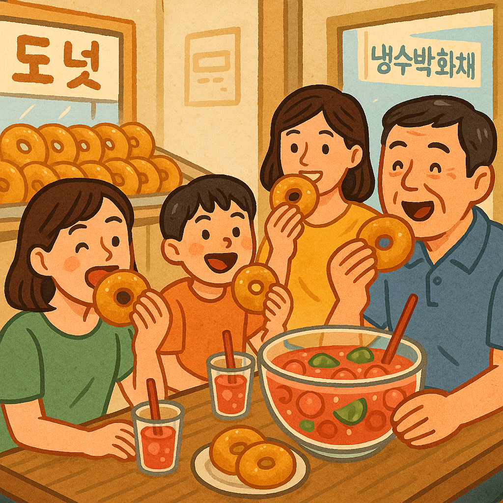 튀긴도넛에 팥 듬뿍, 즉석 화채, 찐 옛날맛 가득~