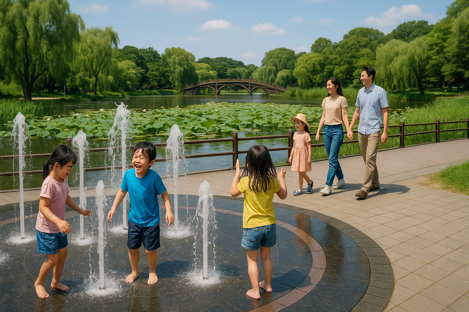호수·분수·연꽃 풍경이 장관. 분수 시즌엔 물놀이 텐션 업, 비수기에도 생태연못 따라 곤충·수생식물 관찰이 꽉 찬다.